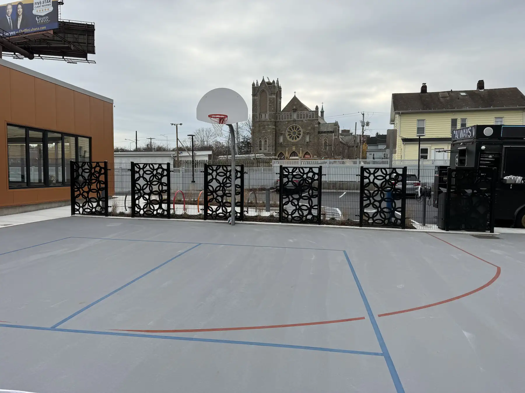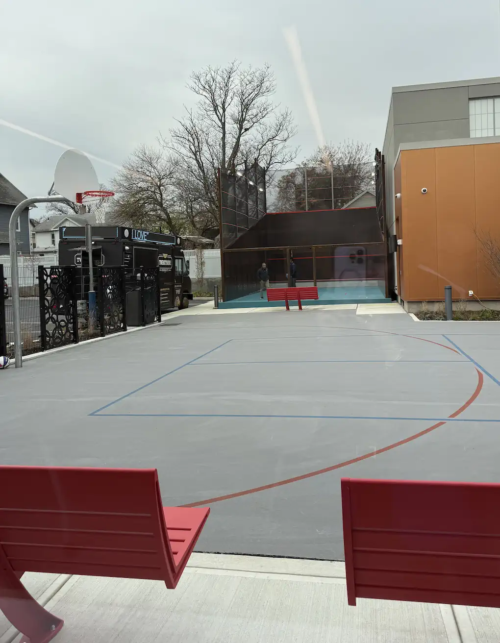Construction of a LEED v4 Certified squash and education facility, featuring 7 indoor squash courts and an outdoor steel squash court, classrooms with Wi-Fi, locker rooms with showers, an outdoor courtyard with a basketball hoop, administrative offices, and a private parking area.